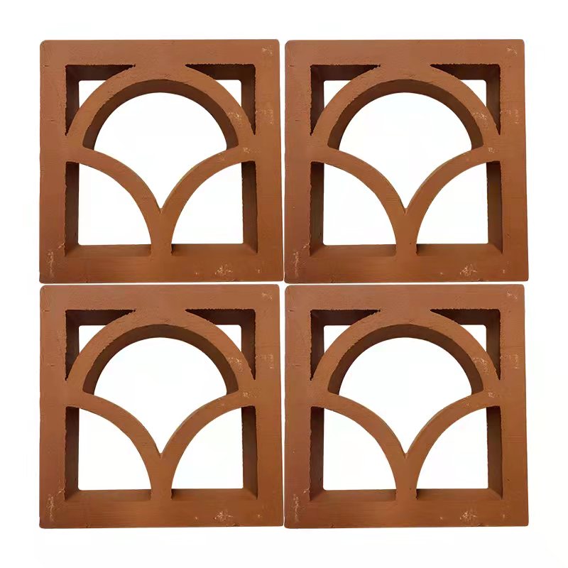 : 独特的拱形与扇形镂空组合,打破传统砖块的厚重感,以灵动的几何线条勾勒出通透的视觉层次,阳光穿过时,光影交织成诗意的空间韵律。