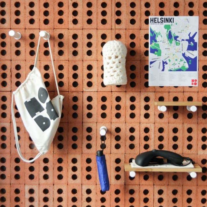 : 标志性的三孔贯通设计,不仅有效减轻了砖体自重、提升了墙面的通风透气性,更预留了灵活的安装空间,可直接适配挂钩、支架等配件,轻松打造兼具收纳与展示功能的个性墙面。