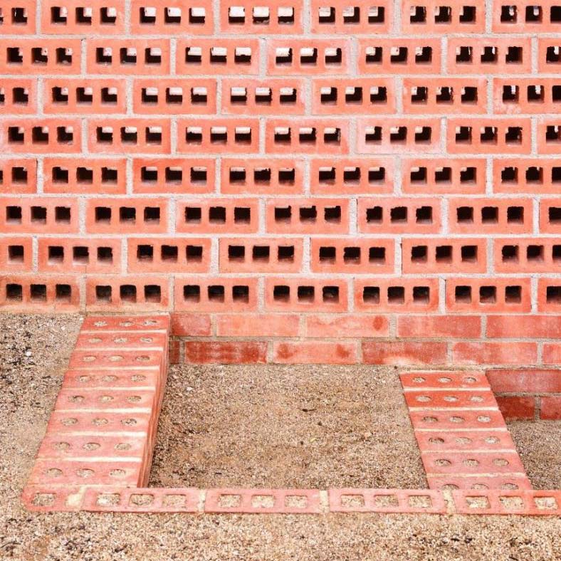 : 砖体采用三孔空心结构设计,在保证高抗压强度的同时有效减轻自重,兼具优异的隔热、隔音与透气性能,能降低建筑整体荷载与能耗。其表面呈现陶土天然的红棕色质感,砖体致密坚实,具备耐磨损、抗冻融、耐腐蚀的特性,在户外恶劣环境下也能长期稳定使用。